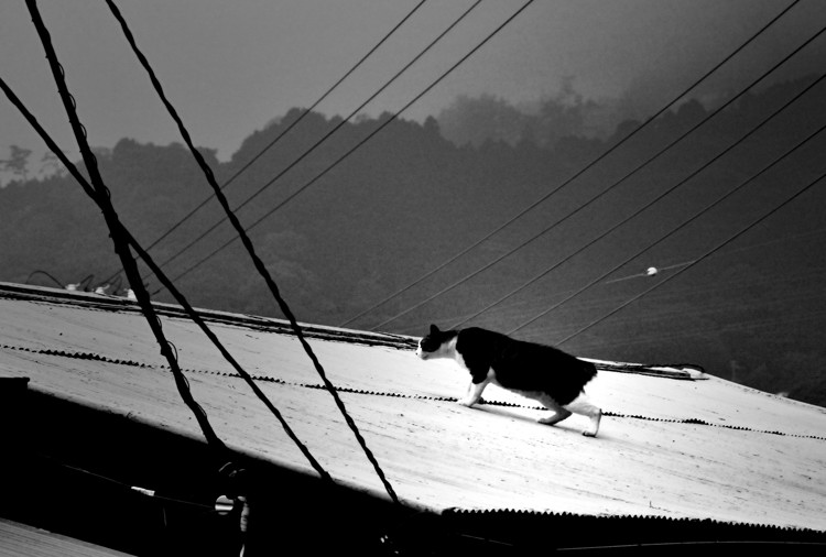 まだ夜だと思って屋根に上ったら、朝日が射してきた。